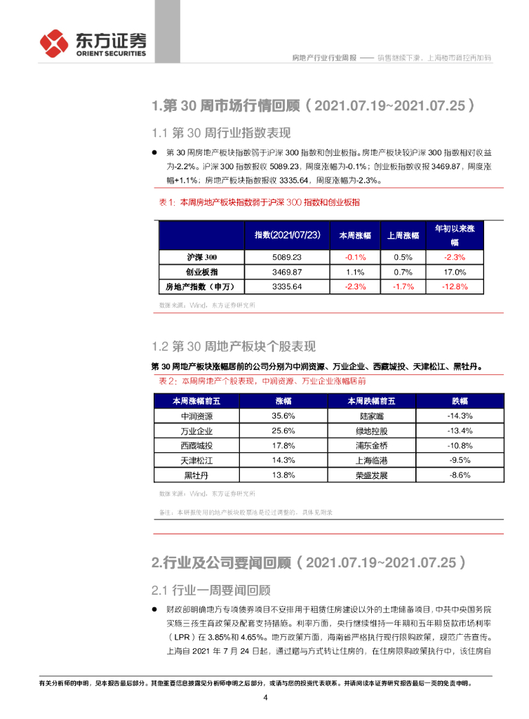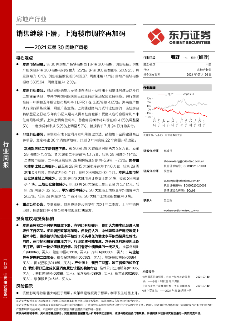 东方证券:2021年第30周地产周报:销售继续下滑,上海楼市调控再加码.pdf