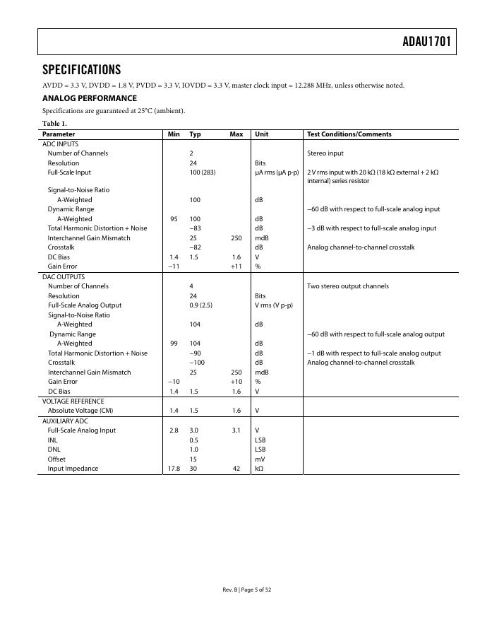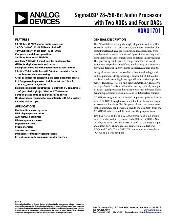 ANALOG DEVICES ADAU1701 英文产品 数据手册 Rev B.pdf