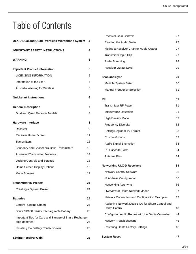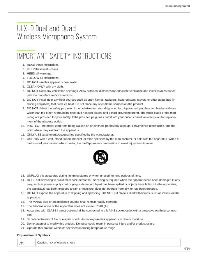 舒尔ULXD双通道和四通道无线麦克风系统用户指南.pdf