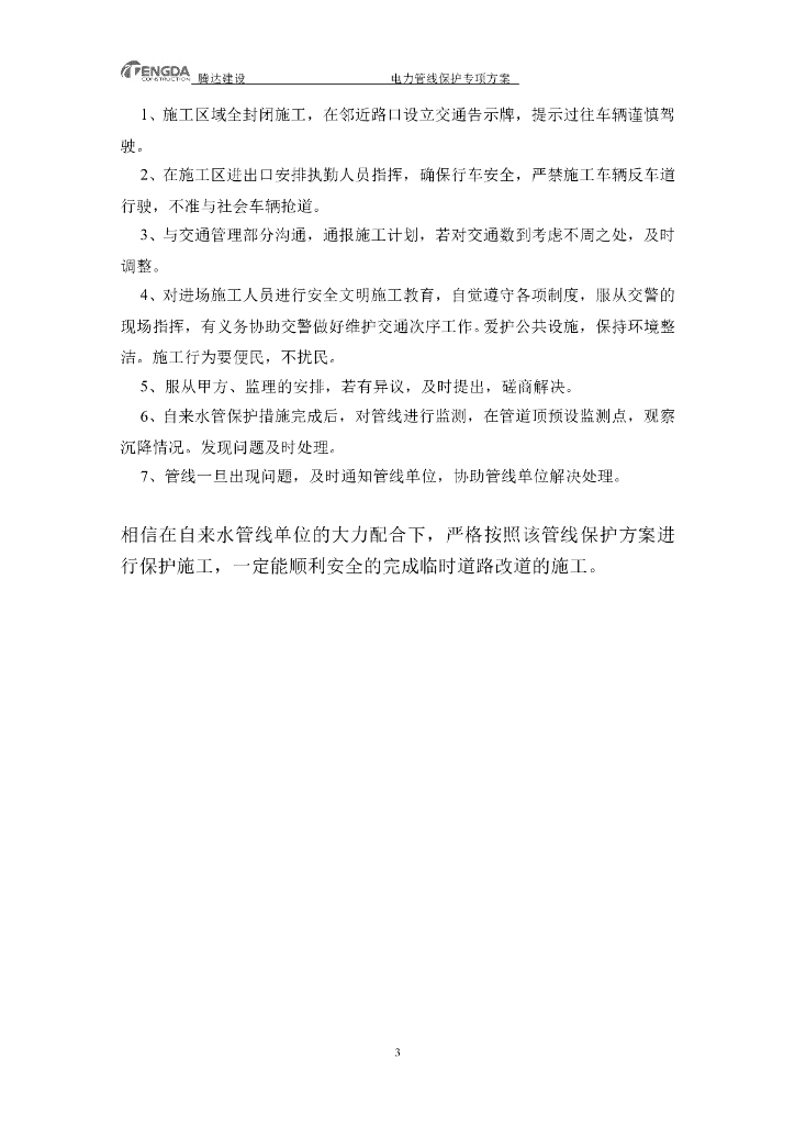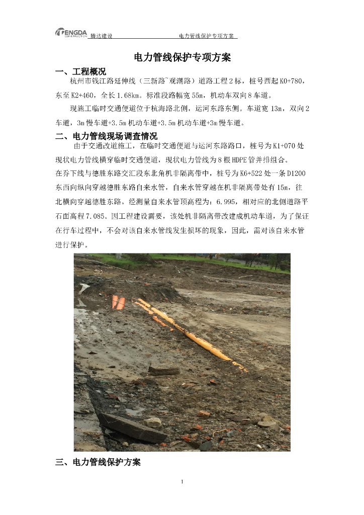 某城市道路电力管道保护专项施工方案.doc