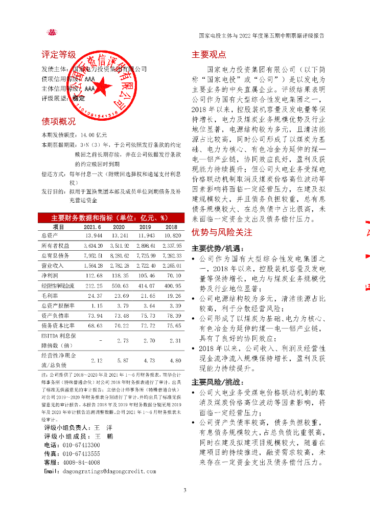 大公:国家电力投资集团有限公司主体与2022年度第五期中期票据信用评级报告.pdf