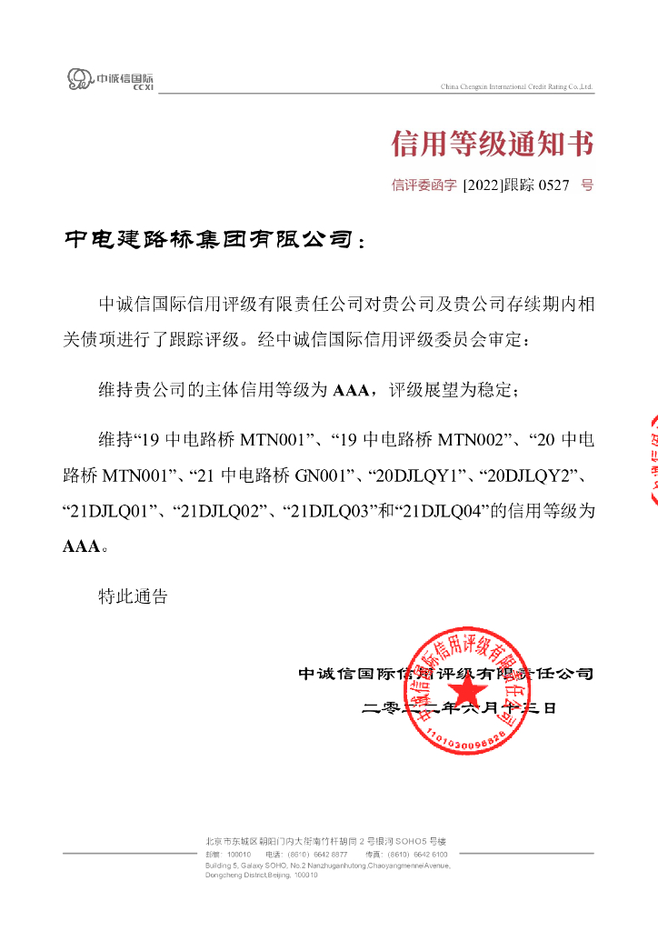 中诚信:中电建路桥集团有限公司2022年度跟踪评级报告.pdf