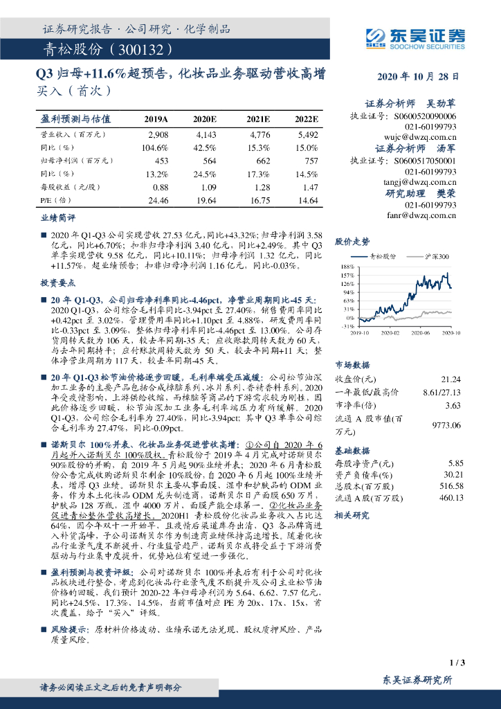 东吴证券:青松股份(300132)-Q3归母+11.6%超预告,化妆品业务驱动营收高增.pdf