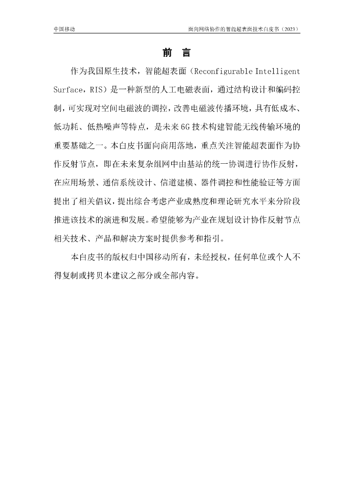 中国移动:面向网络协作的智能超表面技术白皮书(2023).pdf