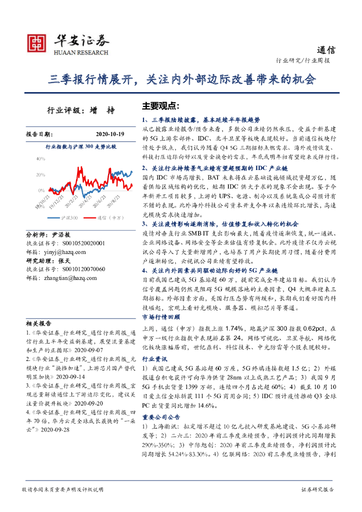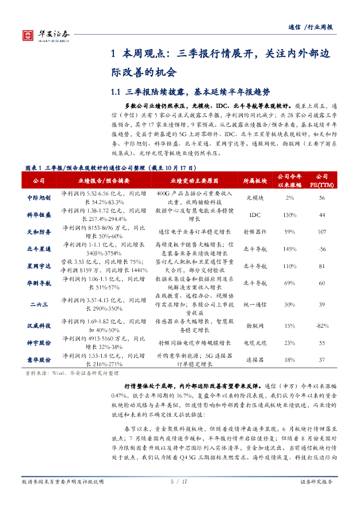 华安证券:通信行业周报:三季报行情展开,关注内外部边际改善带来的机会.pdf