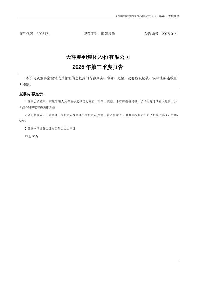 300375-鹏翎股份:2025年三季度报告.pdf