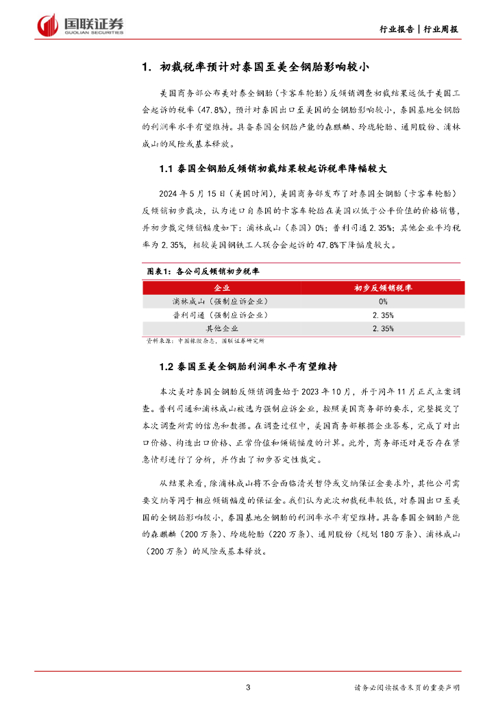 国联证券:基础化工行业周专题:泰国全钢胎反倾销初裁出台,轮胎后市怎么看?.pdf