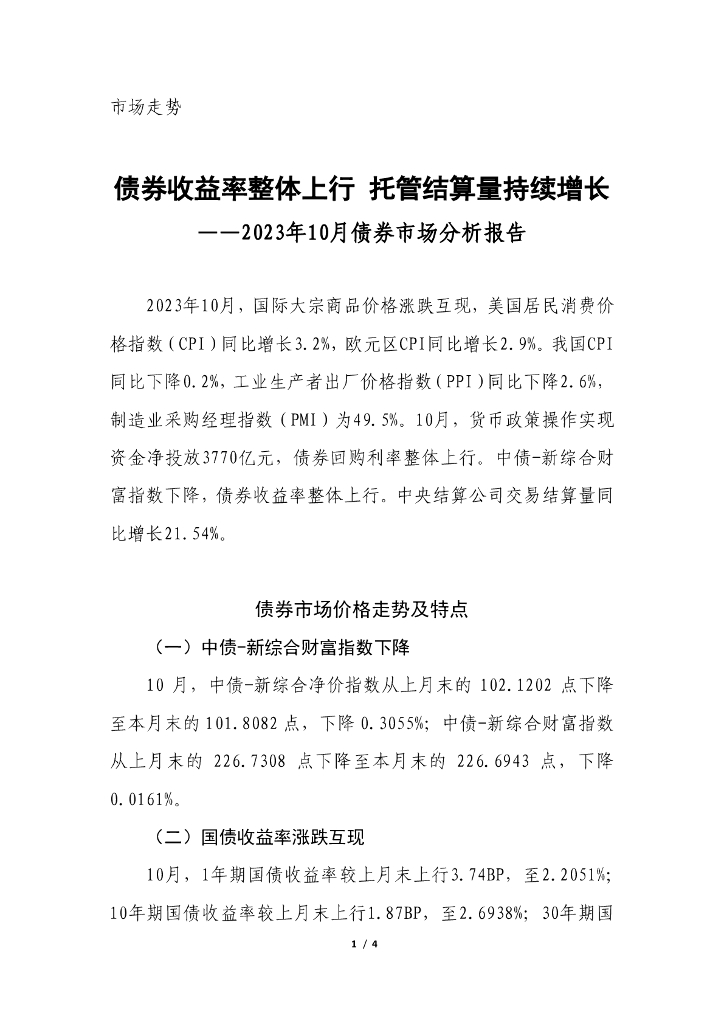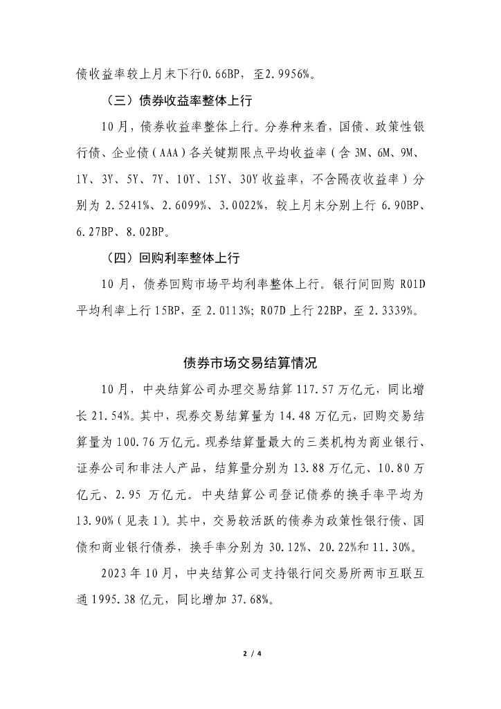 中国债券信息网:债券收益率整体上行 托管结算量持续增长——2023年10月债券市场分析报告.pdf