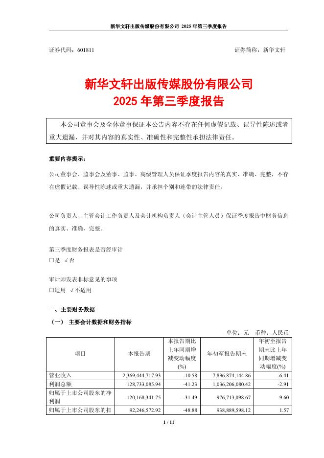 601811-新华文轩:新华文轩2025年第三季度报告.pdf