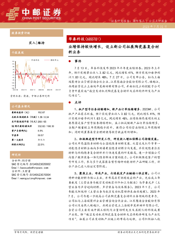 中邮证券:华秦科技(688281)-业绩保持较快增长,设立新公司拓展陶瓷基复合材料业务.pdf
