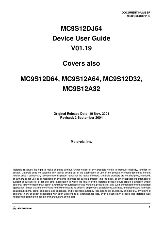 FREESCALE SEMICONDUCTOR MC9S12DJ64 Device User Guide V01.19 Covers also MC9S12D64, MC9S12A64, MC9S12D32, MC9S12A32.pdf