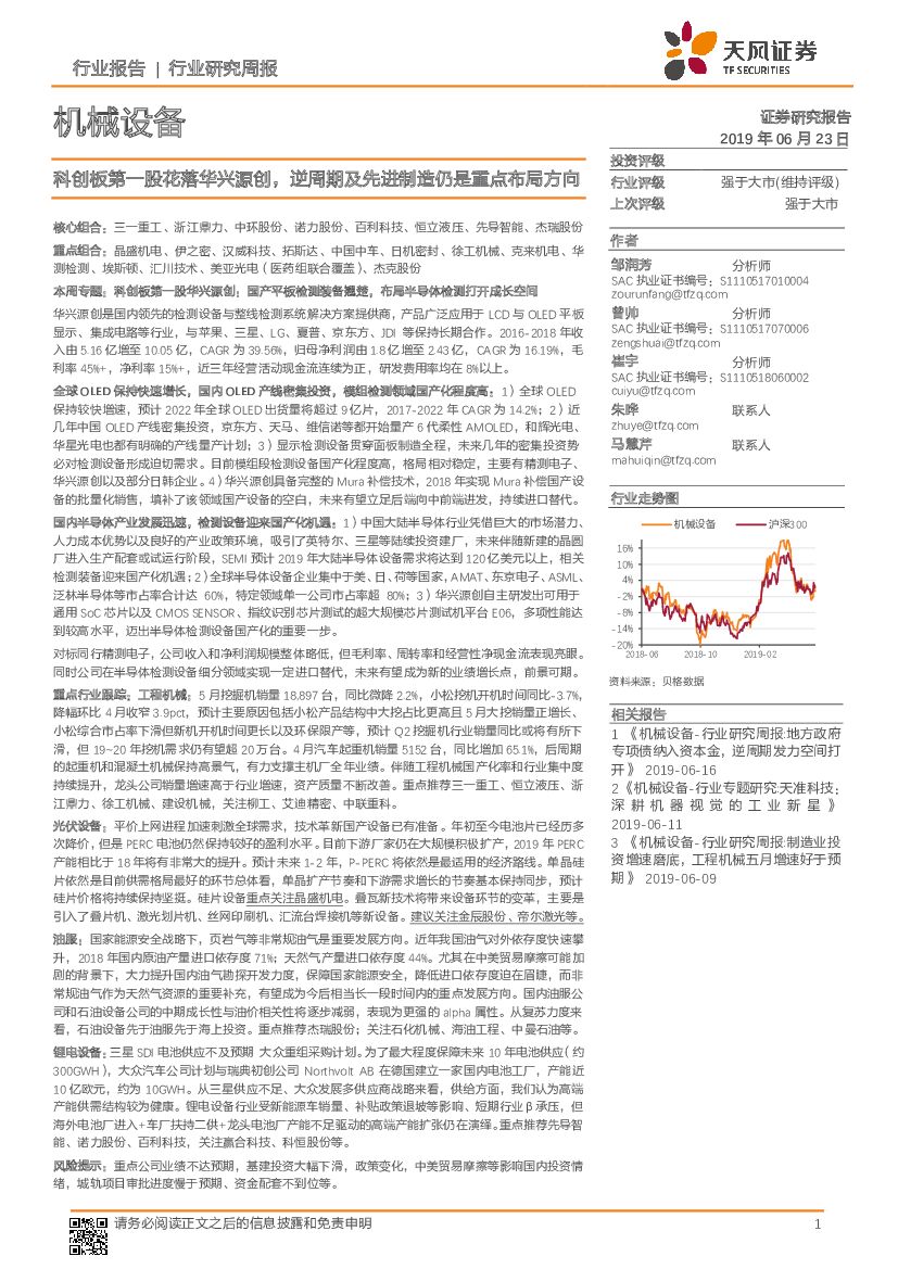 天风证券:机械设备行业研究周报:科创板第一股花落华兴源创,逆周期及先进制造仍是重点布局方向.pdf