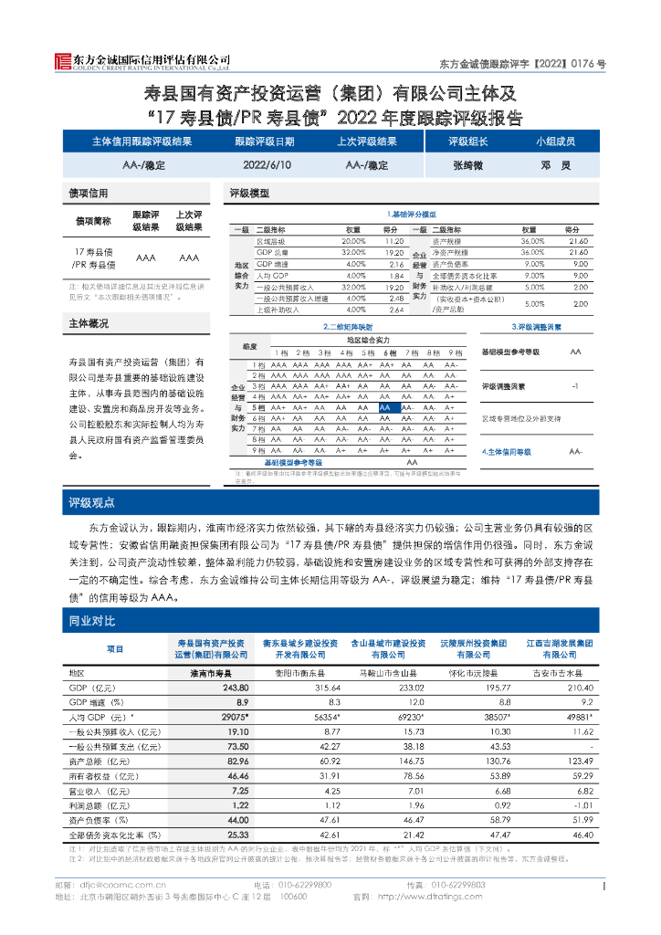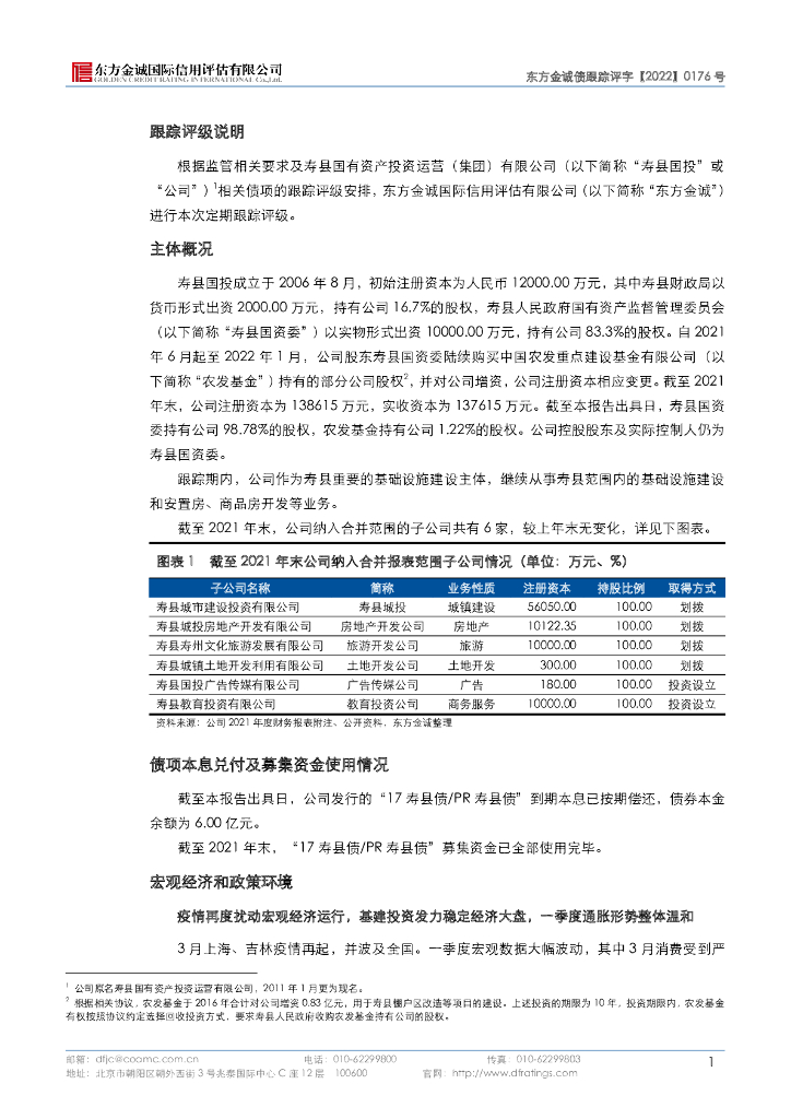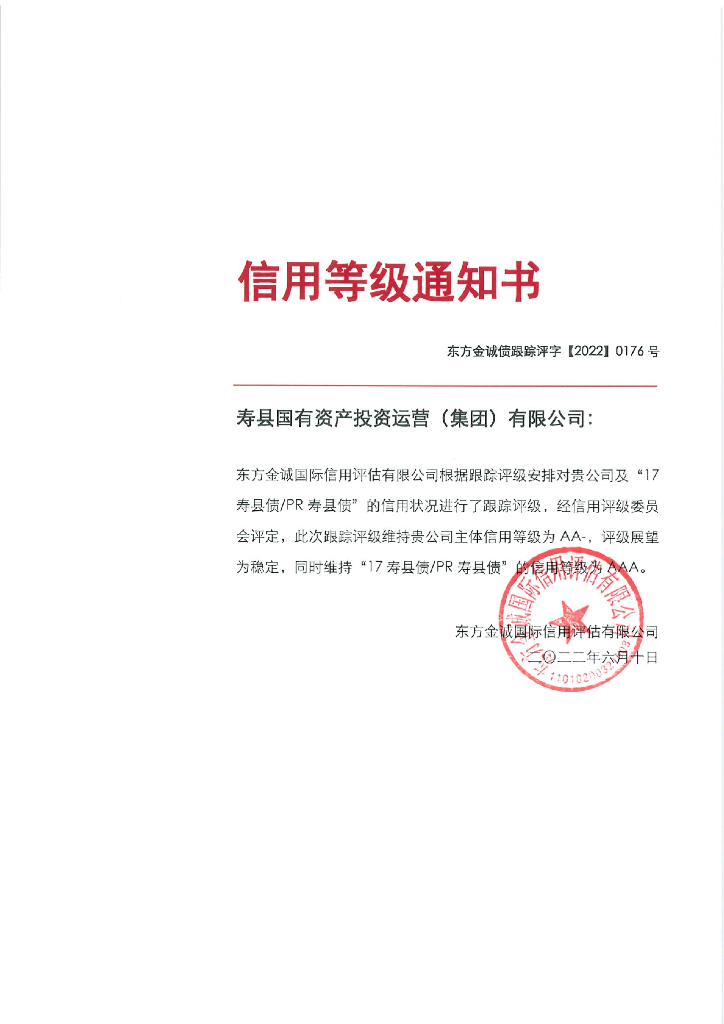 东方金诚:寿县国有资产投资运营(集团)有限公司主体及“17寿县债PR寿县债”2022年度跟踪评级报告.pdf