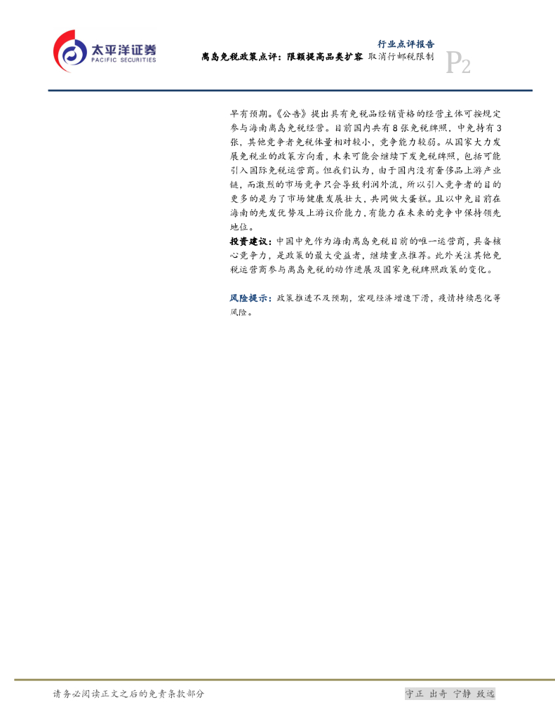 太平洋证券:消费者服务Ⅱ:离岛免税政策点评:限额提高品类扩容 取消行邮税限制.pdf