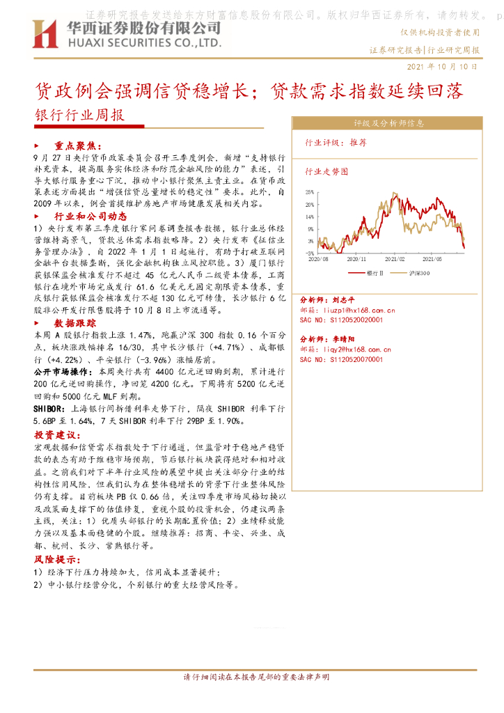 华西证券:银行行业周报:货政例会强调信贷稳增长;贷款需求指数延续回落.pdf