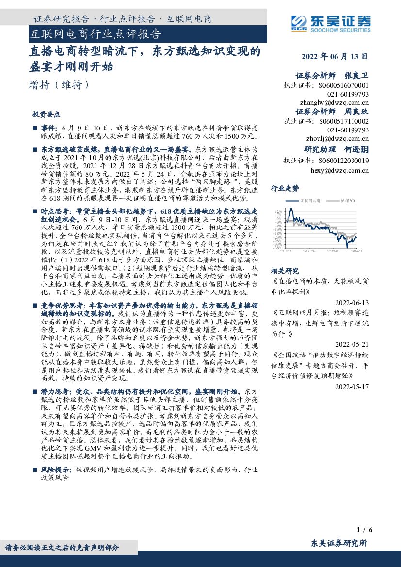 东吴证券:互联网电商行业点评报告:直播电商转型暗流下,东方甄选知识变现的盛宴才刚刚开始.pdf