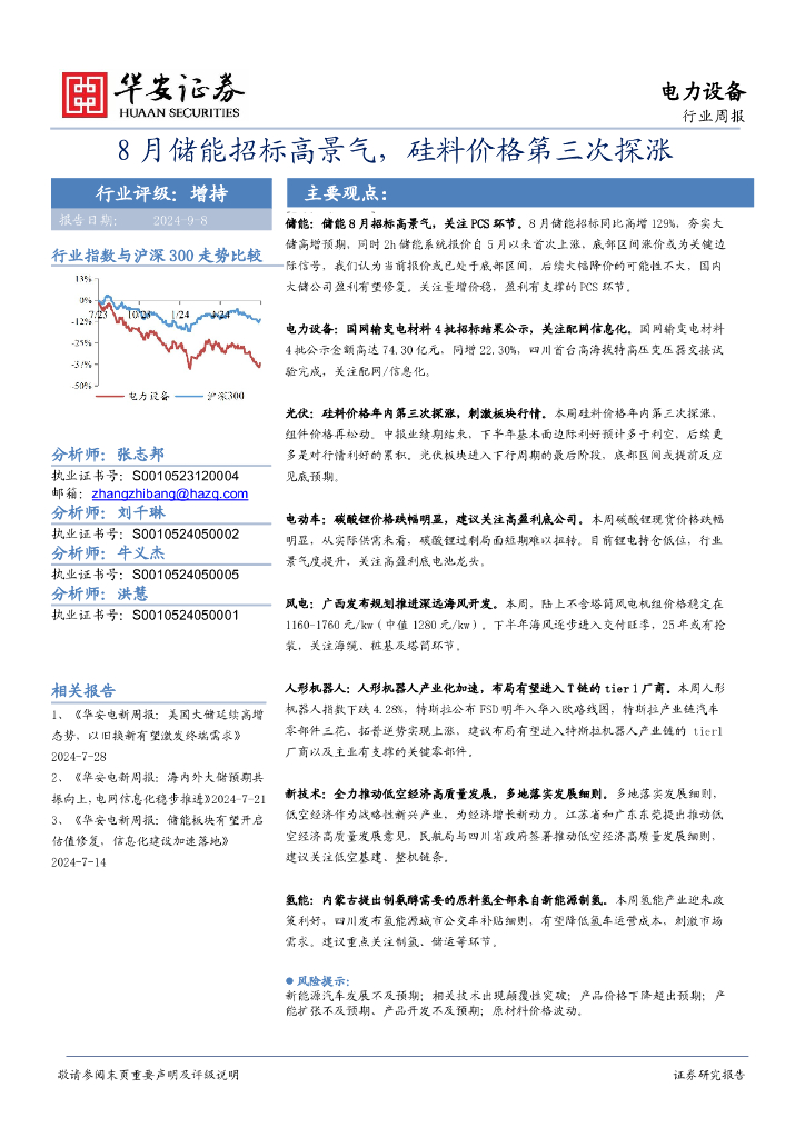 华安证券:电力设备行业周报:8月储能招标高景气,硅料价格第三次探涨.pdf
