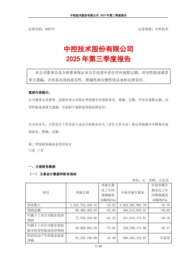 688777-中控技术:中控技术股份有限公司2025年第三季度报告.pdf
