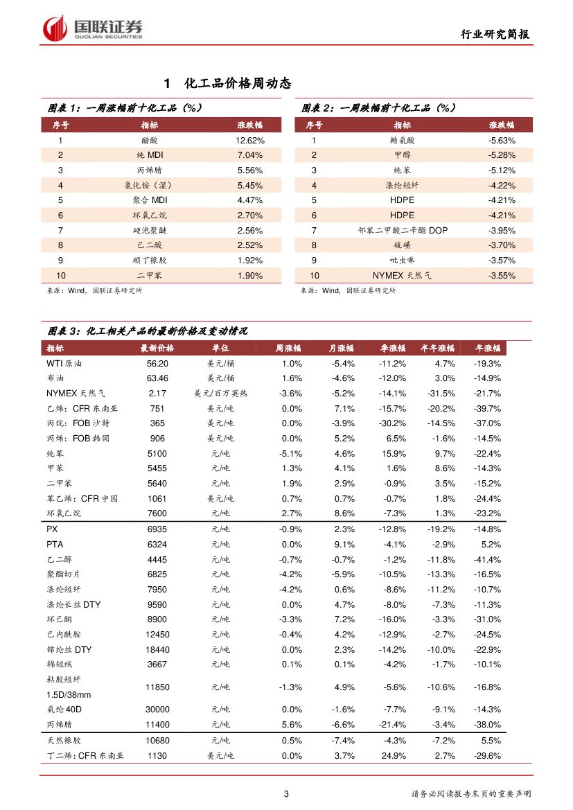 国联证券:化工行业:黄磷价格短期回落,醋酸、纯MDI有所反弹.pdf