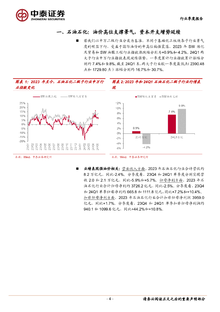 中泰证券:石油石化行业2023年报与2024年一季报总结:油价维持偏强震荡,上游业绩持续向好.pdf