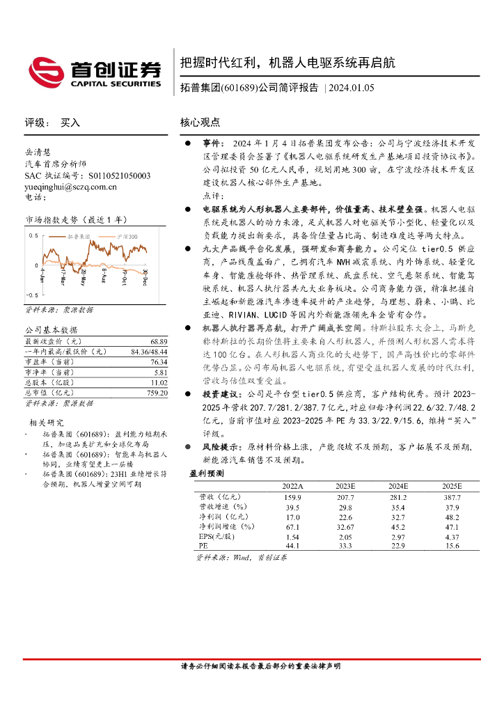 首创证券:拓普集团(601689)-公司简评报告:把握时代红利,机器人电驱系统再启航.pdf