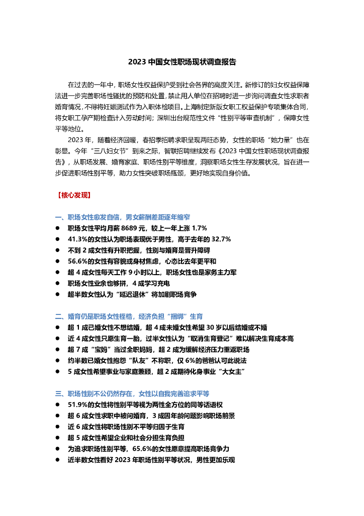 智联招聘:2023中国女性职场现状调查报告.pdf