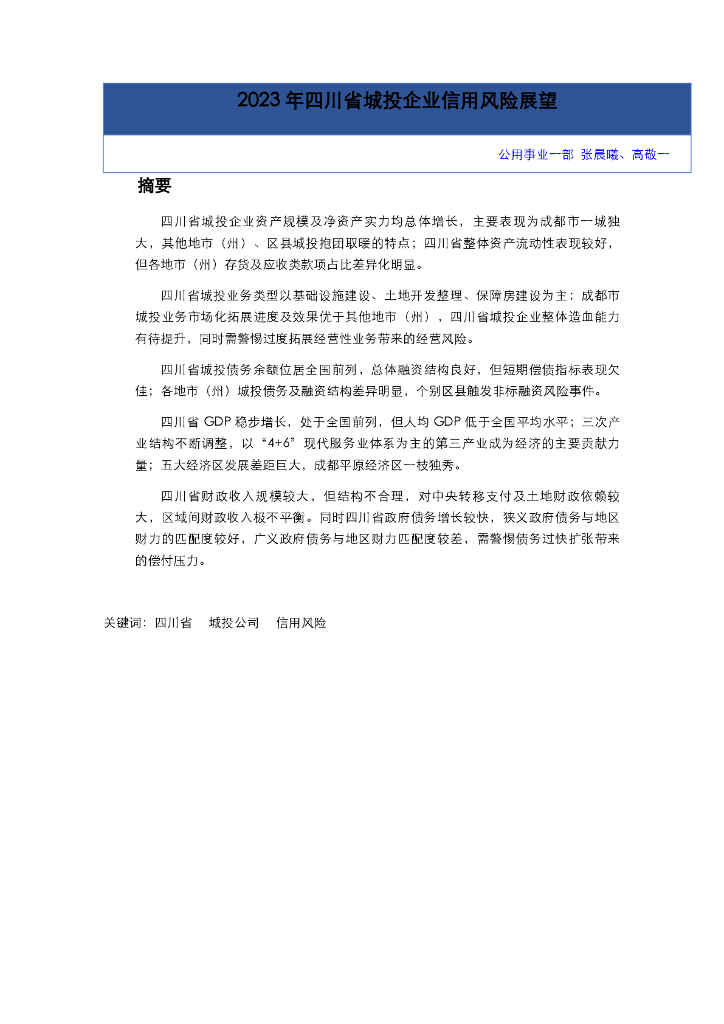东方金诚:2023年四川省城投企业信用风险展望.pdf