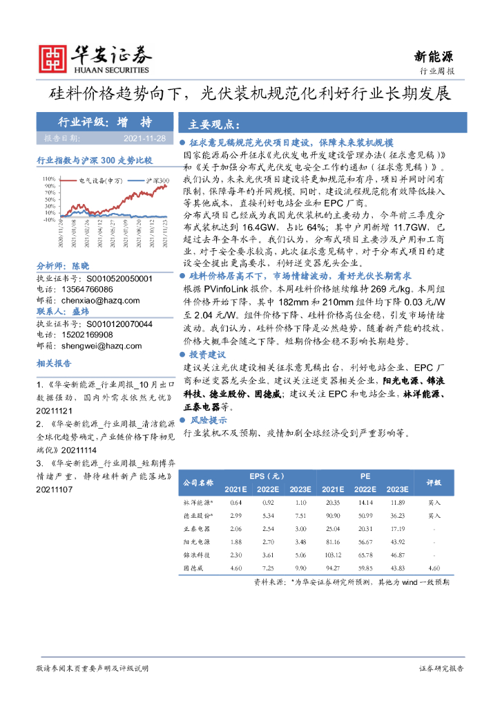 华安证券:新能源:硅料价格趋势向下,光伏装机规范化利好行业长期发展.pdf