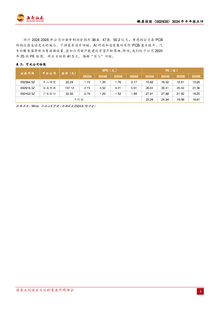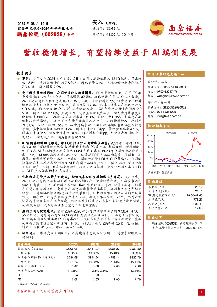 西南证券:鹏鼎控股(002938)-2024年半年报点评:营收稳健增长,有望持续受益于AI端侧发展.pdf