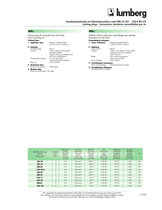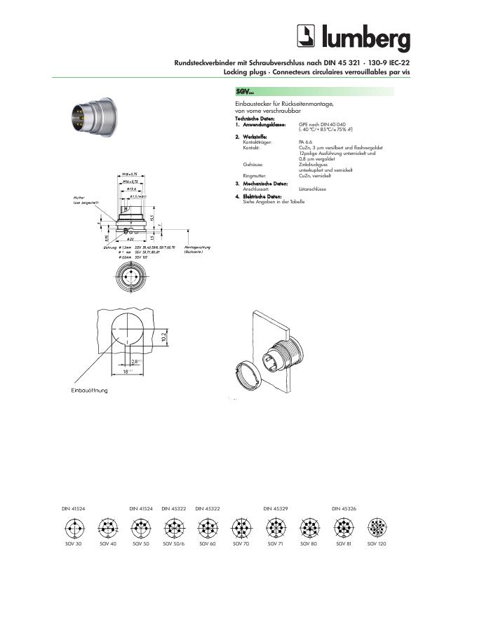 LUMBERG Rundsteckverbinder mit Schraubverschluss nach DIN 45 321 • 130-9 IEC-22 Locking plugs • Connecteurs circulaires verrouillables par vis 数据手册.pdf