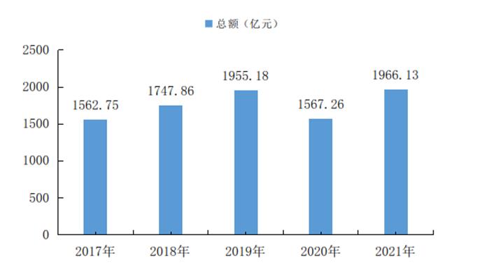 图3 2017-2021年襄阳市社会消费品零售总额
