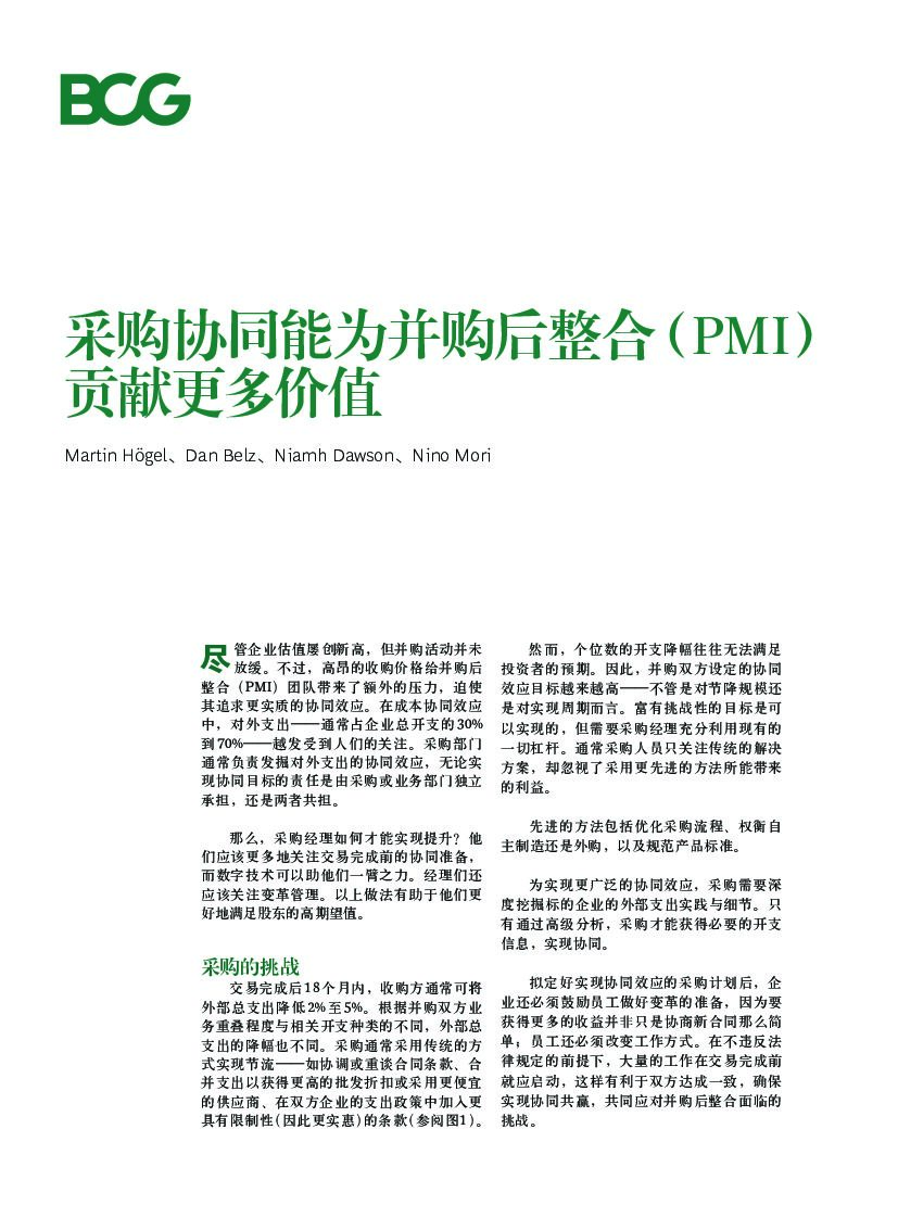 波士顿咨询:采购协同能为并购后整合(PMI)贡献更多价值.pdf