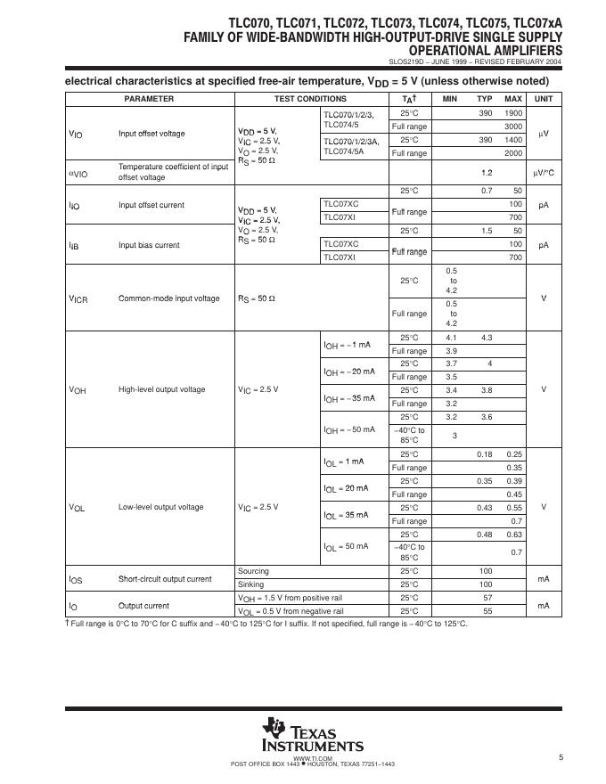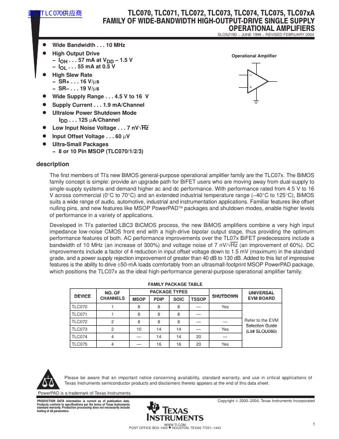 TEXAS INSTRUMENTS TLC070 数据手册.pdf