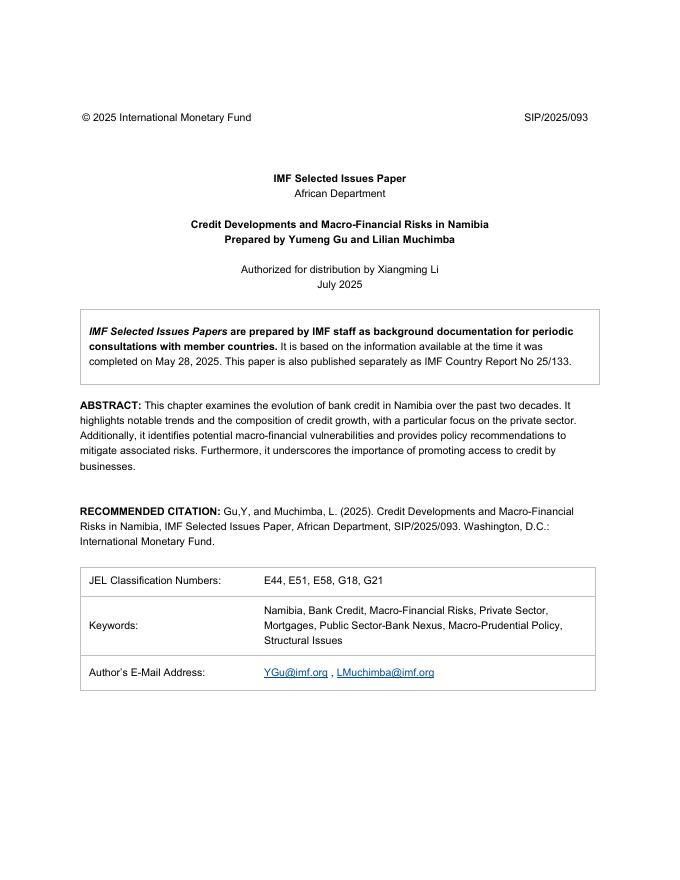 国际货币基金组织:纳米比亚信贷发展与宏观金融风险:纳米比亚(英文版).pdf
