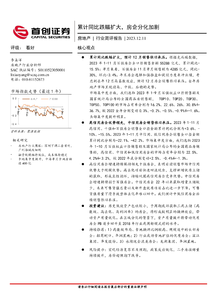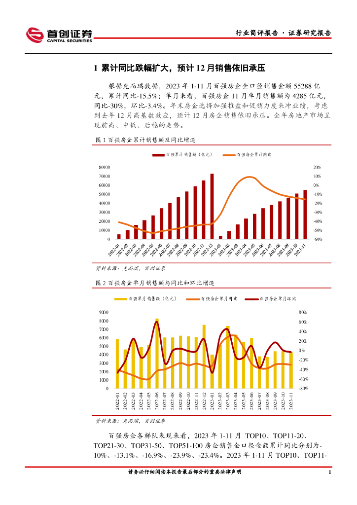 首创证券:房地产行业简评报告:累计同比跌幅扩大,房企分化加剧.pdf