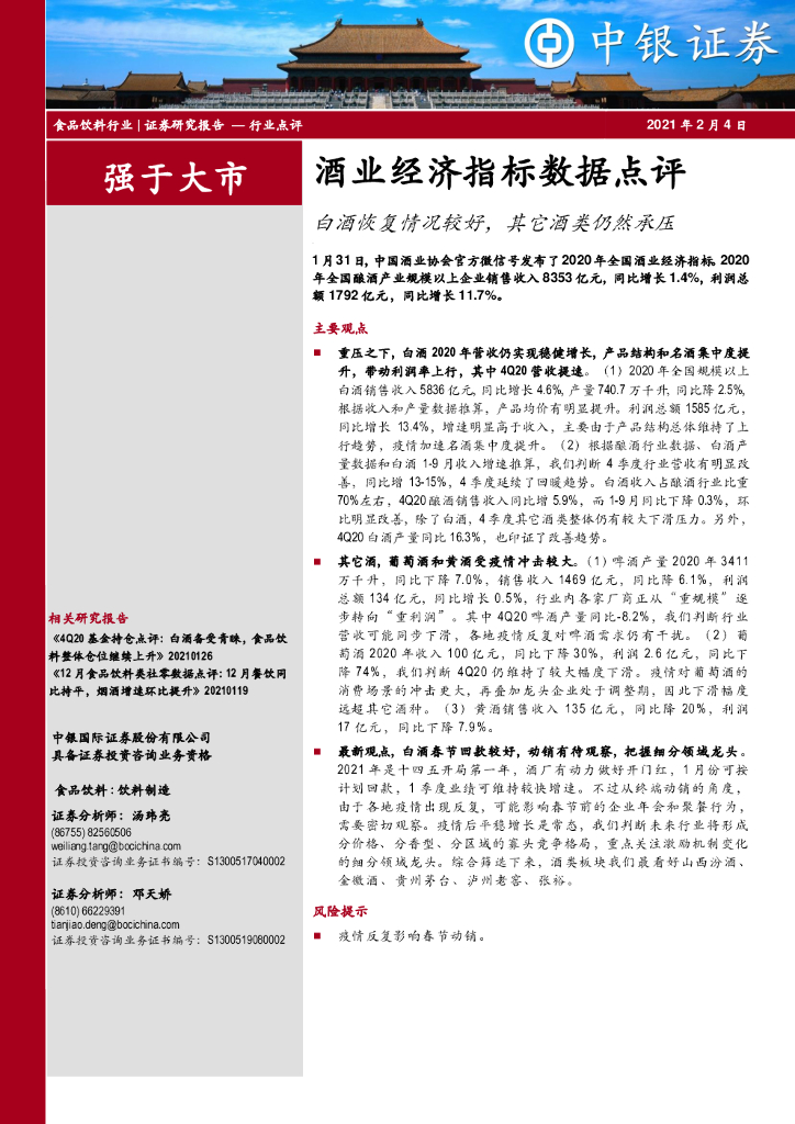 中银证券:酒业经济指标数据点评:白酒恢复情况较好,其它酒类仍然承压.pdf