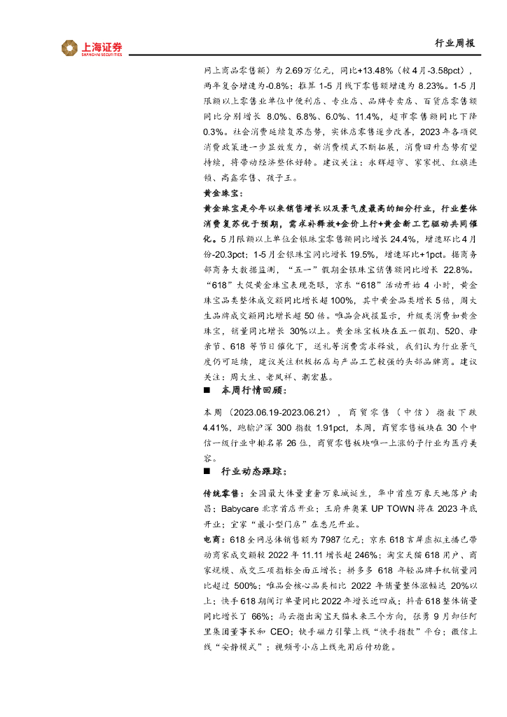 上海证券:商贸零售行业周报:“618”综合电商发展趋缓,直播电商增速较快.pdf
