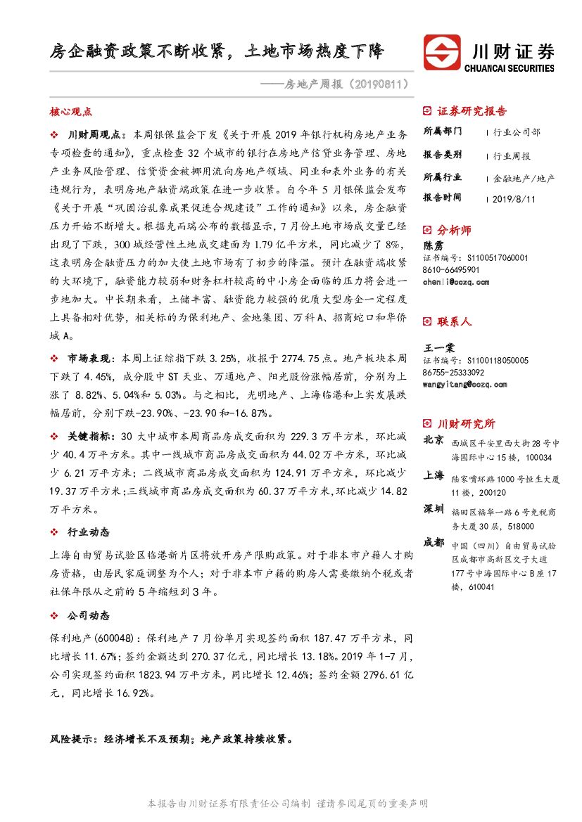 川财证券:房地产周报:房企融资不断收紧,土地市场热度下降.pdf