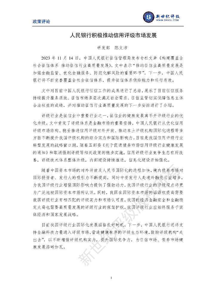 新世纪评级:2023人民银行积极推动信用评级市场发展报告.pdf
