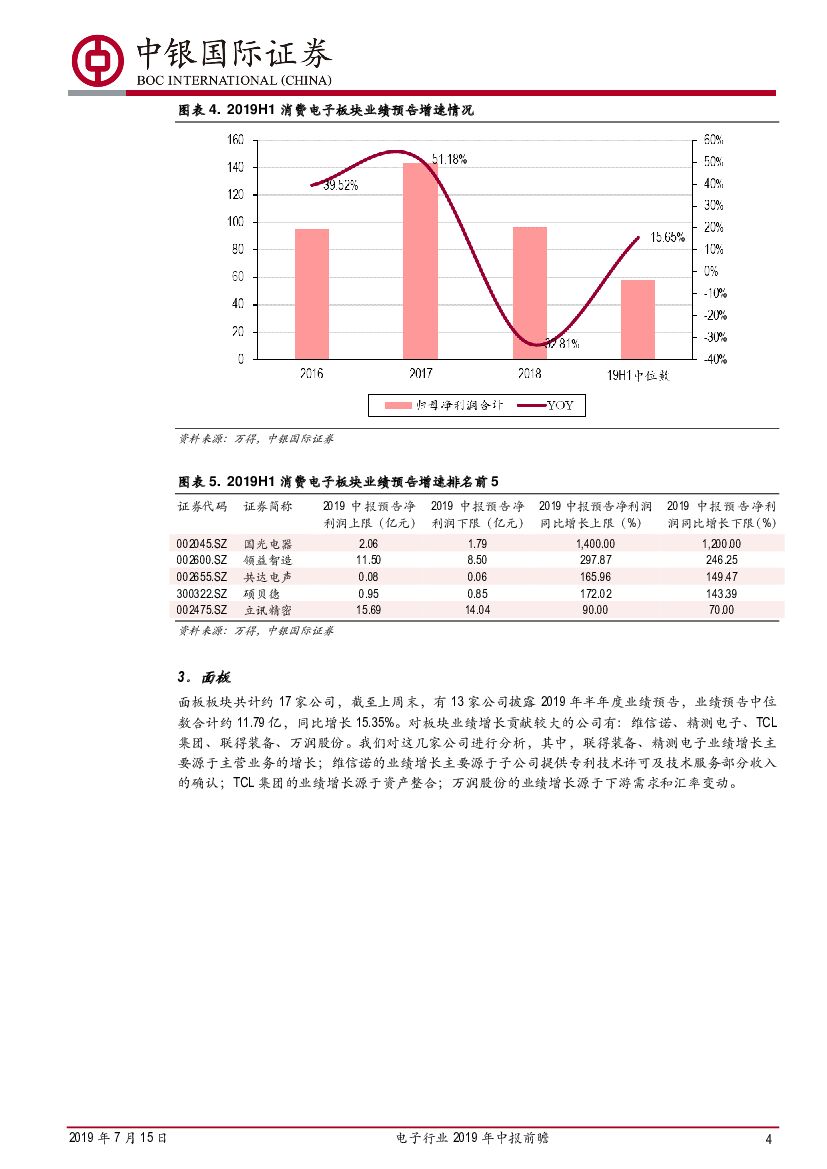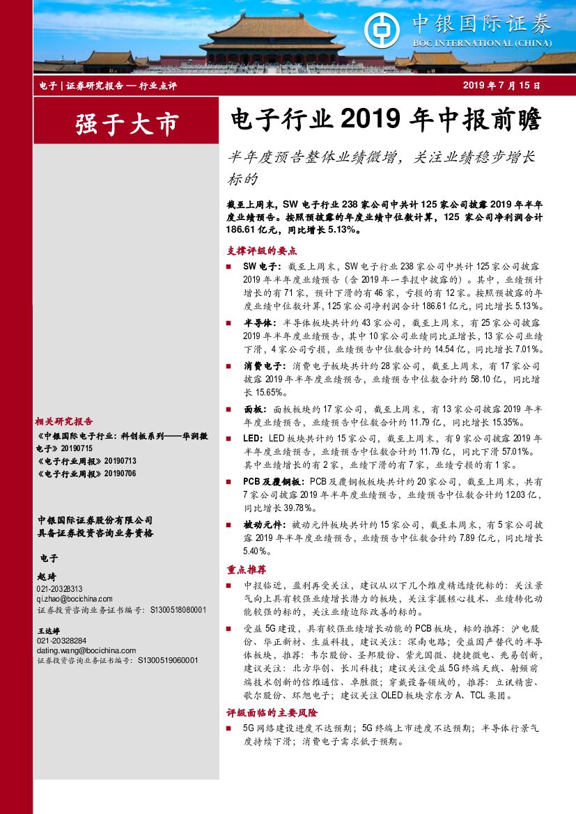 中银国际:电子行业2019年中报前瞻:半年度预告整体业绩微增,关注业绩稳步增长标的.pdf