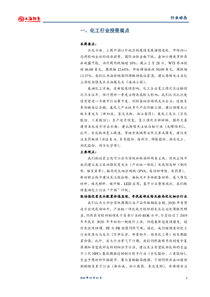 上海证券:化工行业周报:疫情全球化致油价急跌,关注大周期品种.pdf