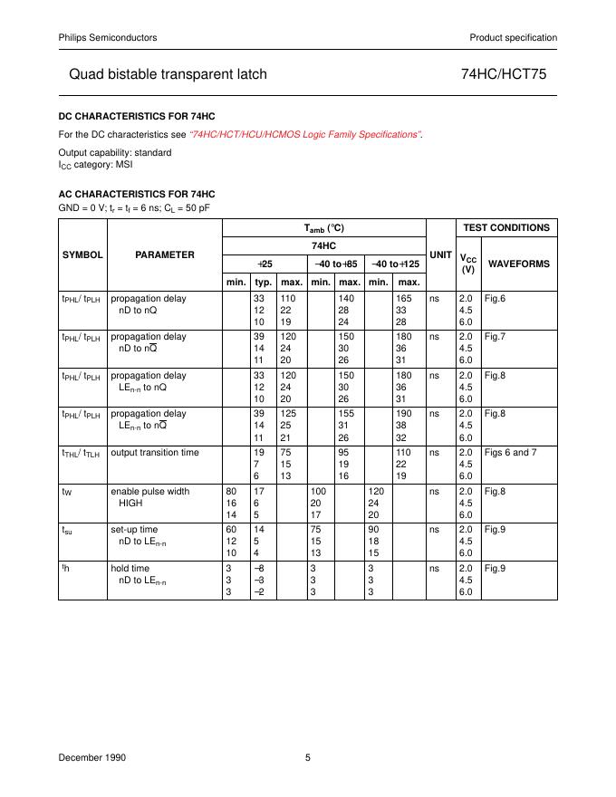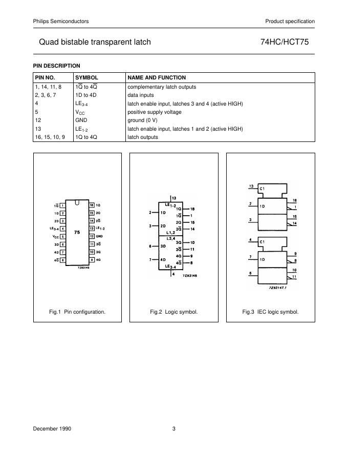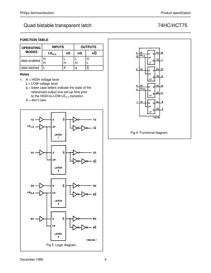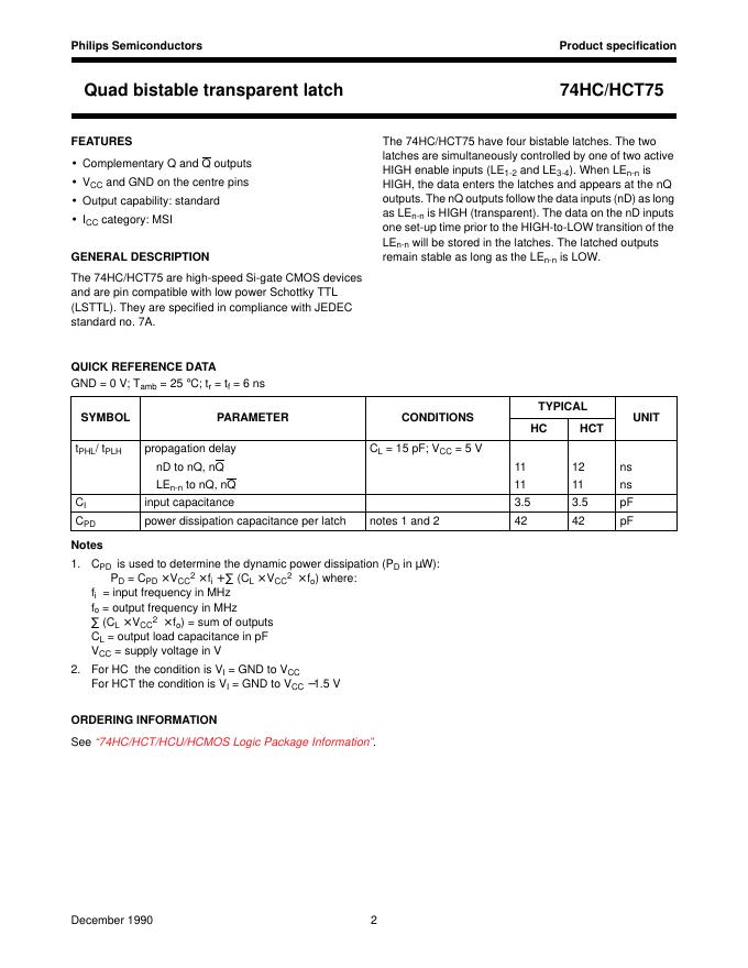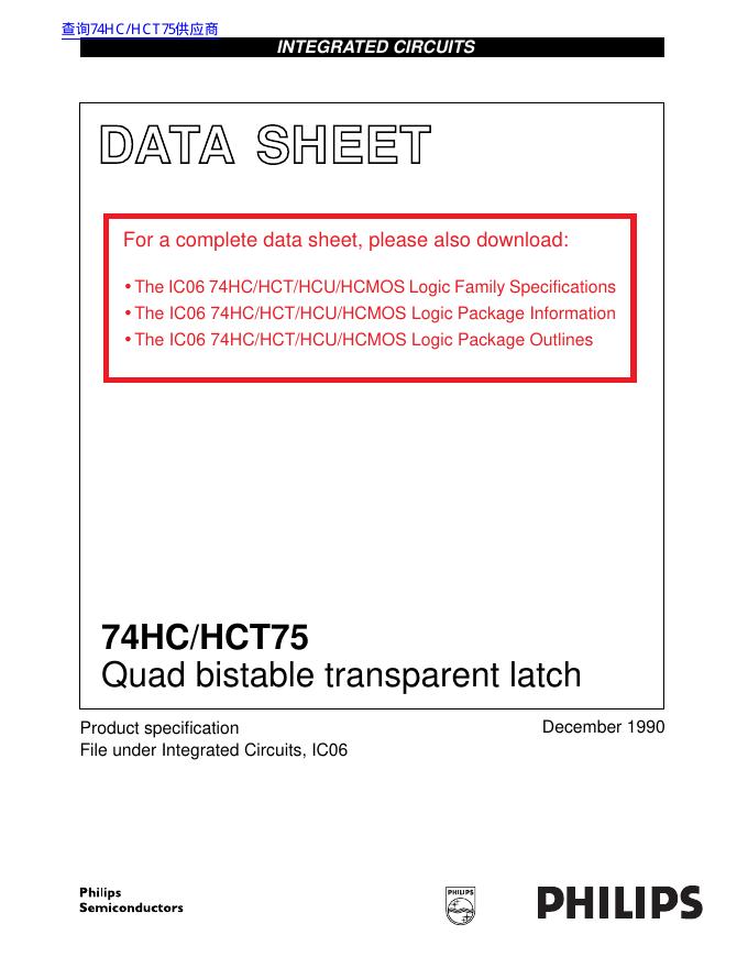 PHILIPS 74HC/HCT75 Quad bistable transparent latch 数据手册.pdf