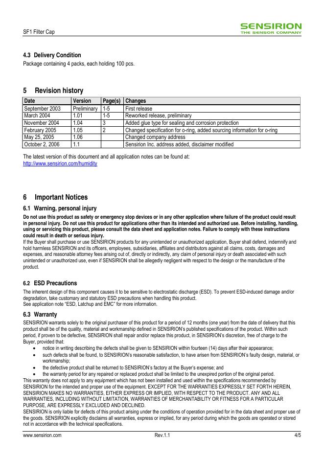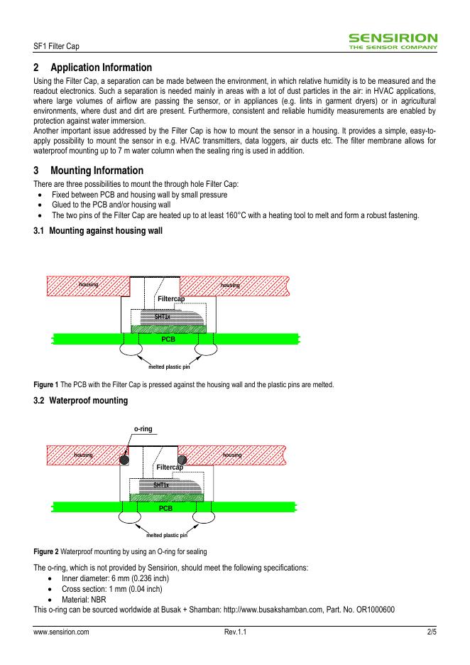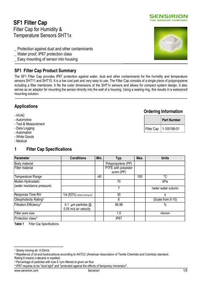 SENSIRION SF1 Filter Cap 数据手册.pdf