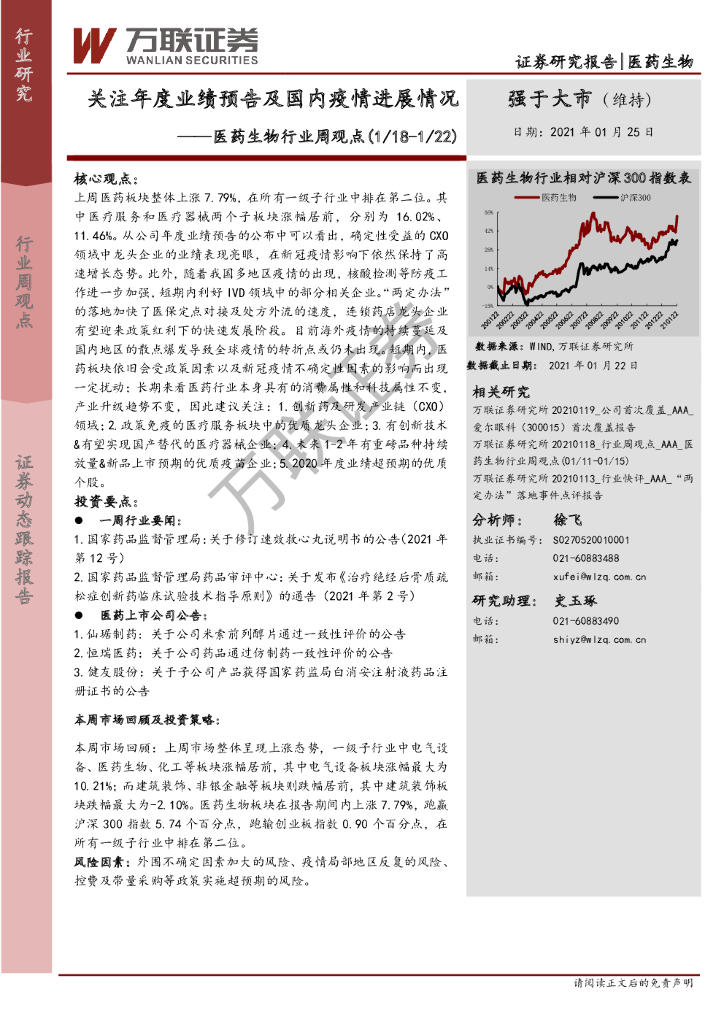 万联证券:医药生物行业周观点:关注年度业绩预告及国内疫情进展情况.pdf
