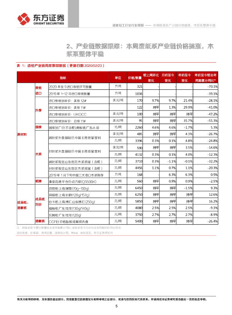 东方证券:造纸产业链数据每周速递:本周废纸系产业链价格提涨,木浆系整体平稳.pdf