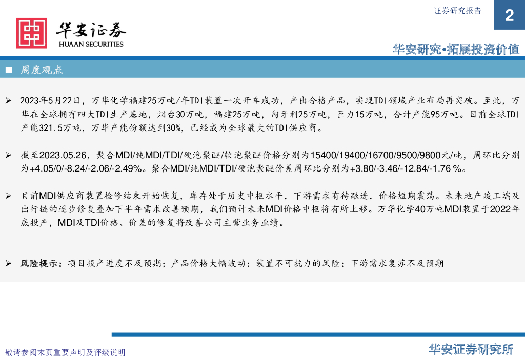 华安证券:万华化学基本面周度动态跟踪:新一届主要核心高管任期3年,福建25万吨/年TDI装置开车成功.pdf