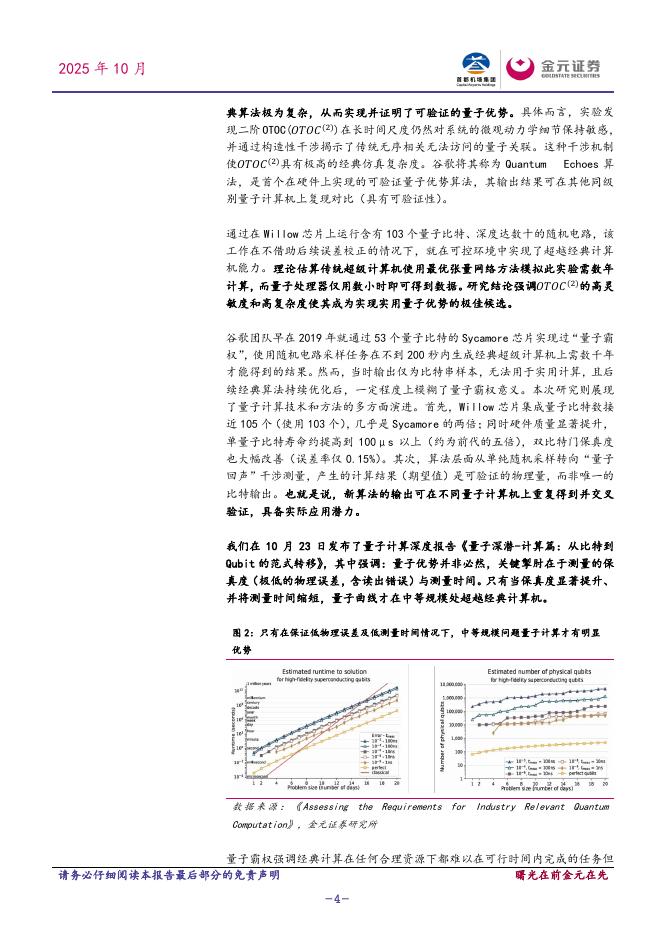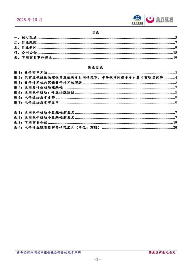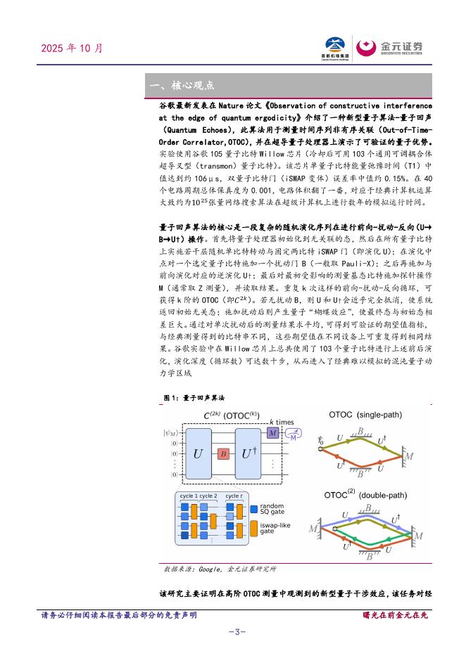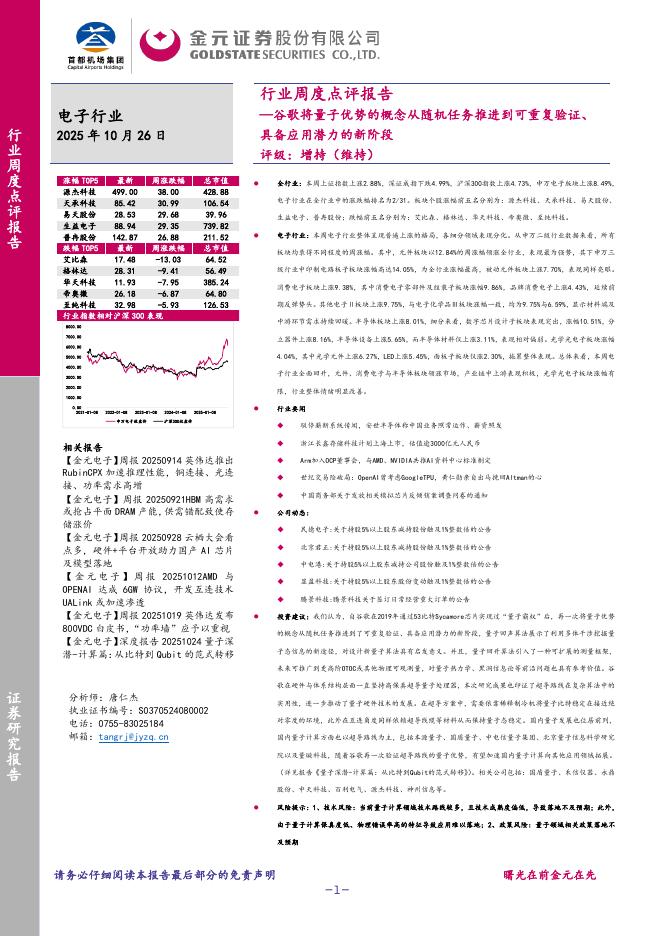 金元证券:电子行业周度点评报告:谷歌将量子优势的概念从随机任务推进到可重复验证、具备应用潜力的新阶段.pdf