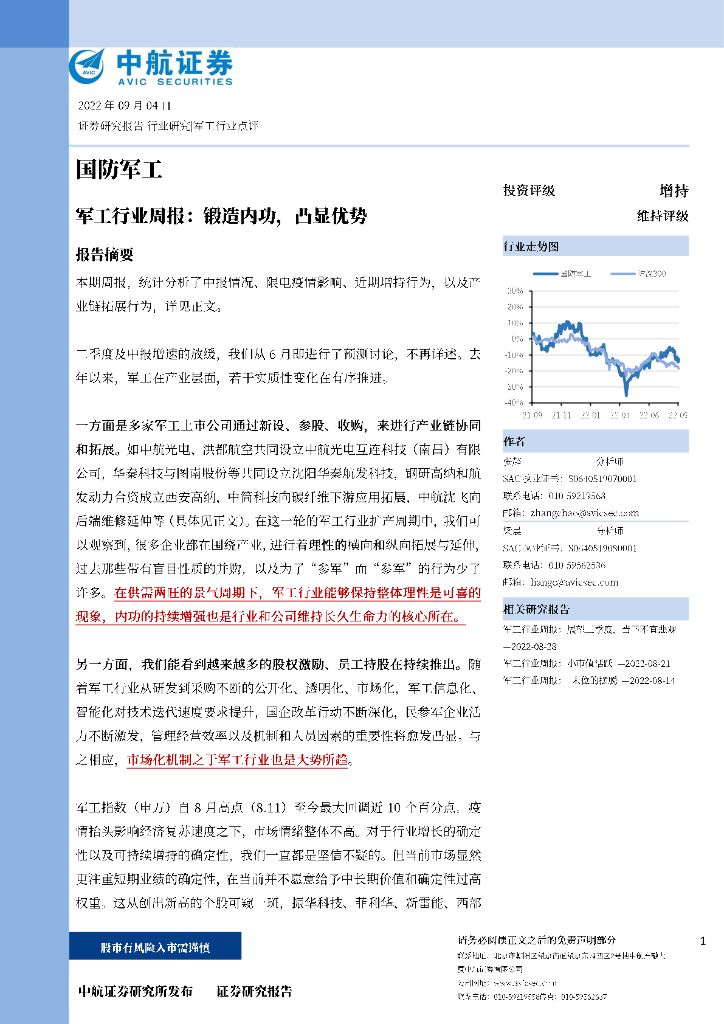中航证券:军工行业周报:锻造内功,凸显优势.pdf