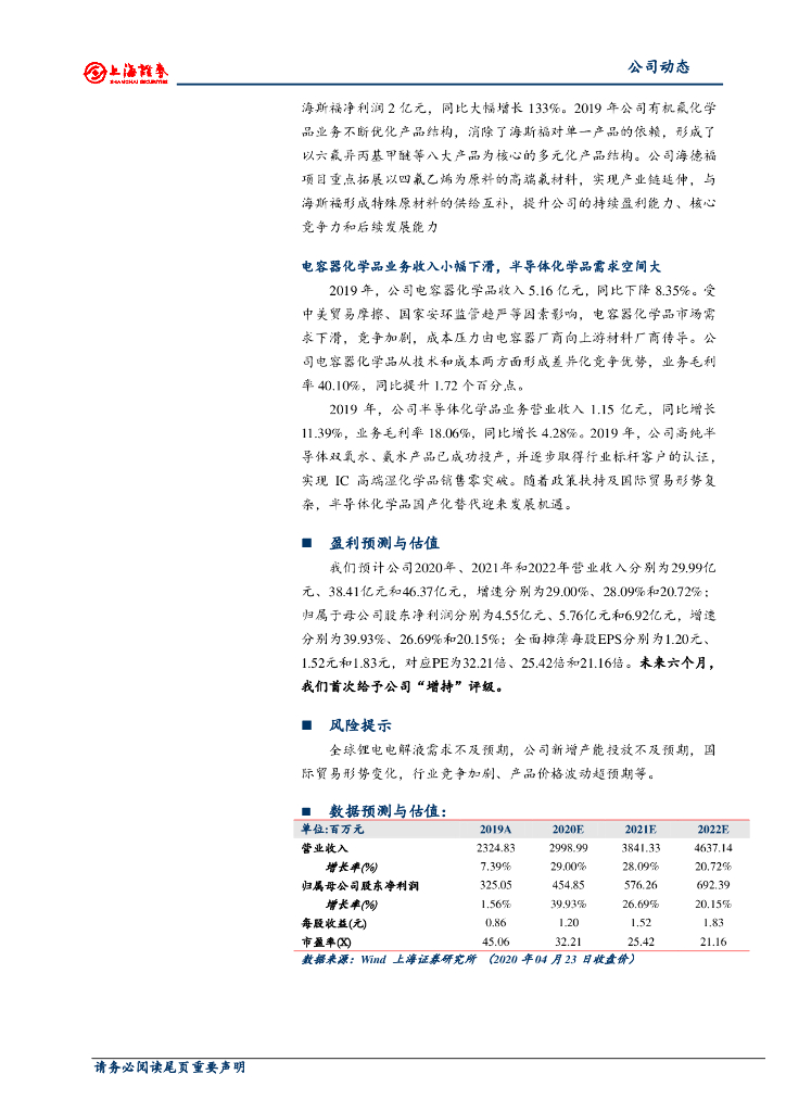 上海证券:新宙邦(300037)-2019年年报&2020年一季报简评:产业链延伸布局,盈利能力显著提升.pdf