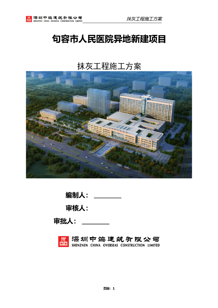 人民医院工程抹灰施工方案.doc